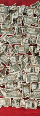 Tecnica materica, colore acrilico su tela con applicazione di banconote americane 1$. Queste opere nascondono un segreto, una banconota viene segnata a tracciata nel sito www.wheresgeorge.com nell'ottica di vedere viaggiare l'opera per gallerie e musei di tutto il mondo .
